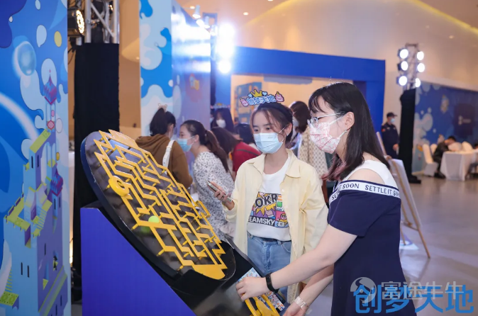 穿過(guò)長(zhǎng)長(zhǎng)的走廊,進(jìn)入“創(chuàng)夢(mèng)大本營(yíng)”,用戶就開(kāi)啟了游戲挑戰(zhàn)之旅~